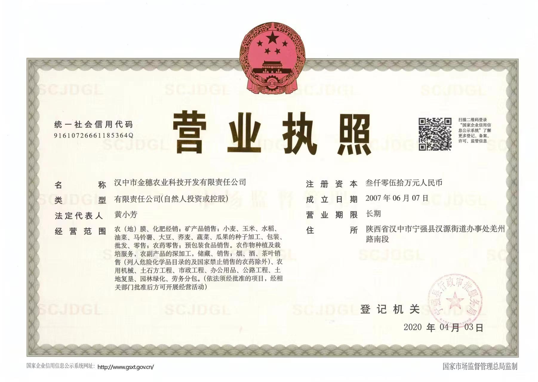 汉中市金穗农业科技开发有限责任公司